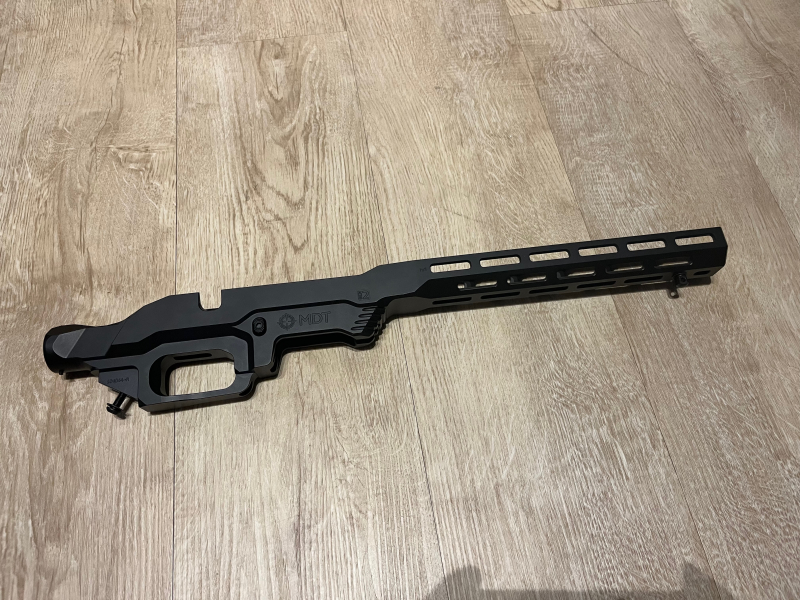 Ich biete einen kaum gebrauchten Chassis-Schaft von MDT für die Ruger All American Short Action Modelle an. Es handelt sich um das Modell MDT LSS-XL Gen2 in schwarz. Mit diesem Chassis können AR15-Magazine verwendet werden. Ich habe den Schaft für kurze Zeit mit einer All American Ranch der ersten Generation verwendet.