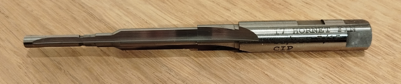 Zur Versteigerung kommt hier eine Komplettreibahle/ Patronenlagerreibahle für das Kaliber .17 Hornet - die Markierung auf der Reibahle lautet: "17 HORNET FIN ST PTG 7/15 CIP". Aus meiner Sicht ist die Reibahle unbenutzt. Es sind keine Gebrauchsspuren zu erkennen.