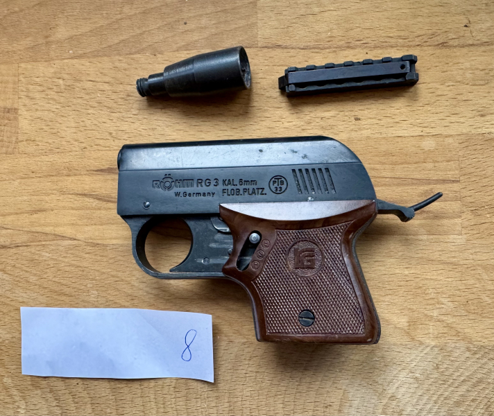 Guterhaltene funktionsfähige Röhm RG 3 mit Signalbecher. Die Hellen Stellen sind Lichtreflexe.