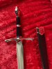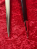 Technische Details (D3): • Gesamtlänge: ca. 35 cm • Klingenlänge: ca. 21 cm • Gewicht: ca. 160 g • Material Klinge: rostfreier Edelstahl (STAINLESS) • Klinge: scharf und spitz • Griff: schwarz mit verchromten Zierelementen, nicht abschraubbar • Parierstange: leicht gebogen, verchromt • Knauf: tropfenförmig, verchromt • Scheide: schwarz, mit Metallbeschlägen an Spitze und Mund