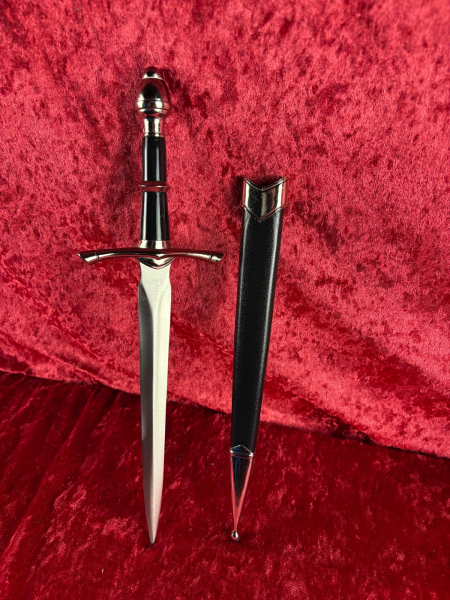 Dieser dekorative Dolch orientiert sich stilistisch an mittelalterlichen Einhandschwertern des 14.–15. Jahrhunderts. Solche Dolche wurden im Nahkampf als Zweitwaffe von Rittern und Söldnern getragen. Heute ist dieses Modell eine beliebte Sammler- und Dekoreplik, inspiriert von historischen Vorbildern.