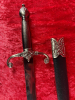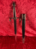 Die schwarze Scheide mit silberfarbenen Metallbeschlägen rundet das edle Gesamtbild ab und macht den Dolch zu einem attraktiven Sammler- oder Dekorationsobjekt – ideal für Vitrinen, Mittelalterfans oder Reenactment-Dekoration.