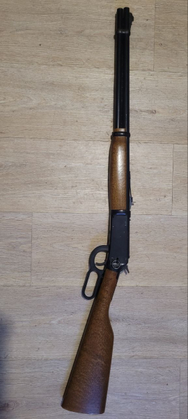 Daisy Modell 1894 4,5mm Rundkugel Mehrlader Echtholzschaft funktionsfähig,die Rundkugeln werden seitlich im Röhrenmagazin (unterm Lauf) geladen und können nach dem klassischen repetieren des Unterhebels geladen werden.