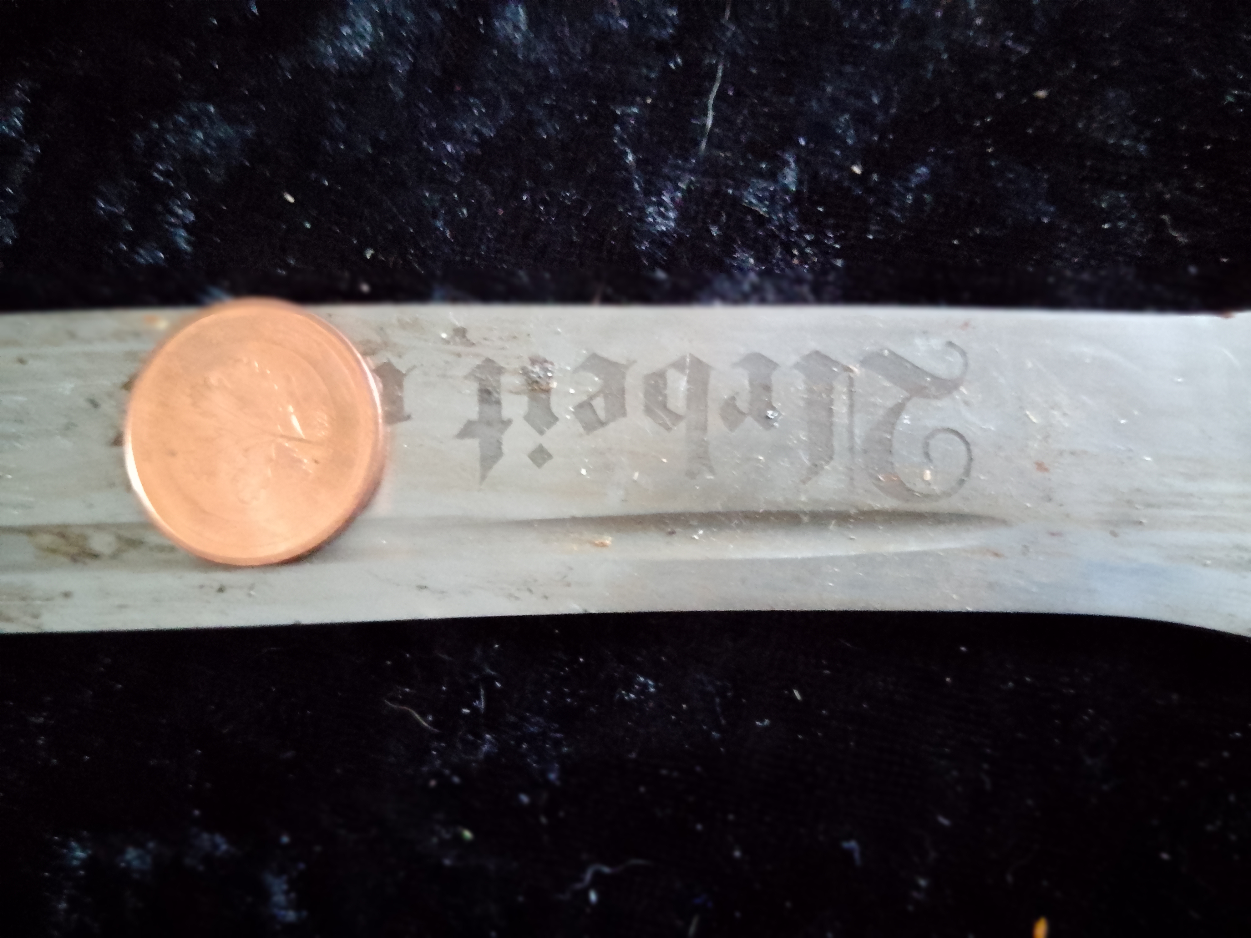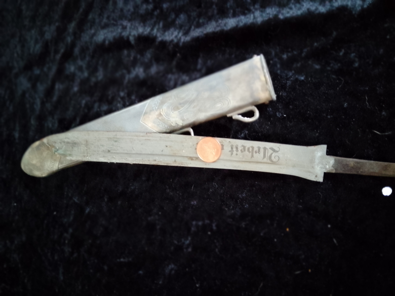 Aus Sammlungsauflösung stammen diese Ersatzteile, Klinge ist Stahl mit Korrosion für den Rad Führer Hauer mit Ätzung und Logo Eickhorn Solingen, dazu passende Scheide, beides durch Reinigung gut zu verbessern.