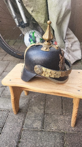 Sehr schöner Pickelhaube/Helm 1.WK. Helm, komplett mit dem Innenfutter.Größenangabe 54.