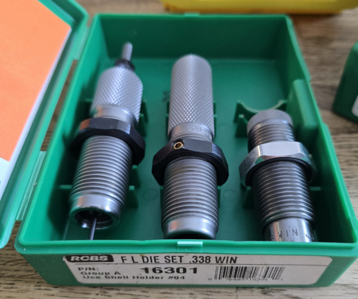 Moin. Ich verkaufe hier einen neuwertigen RCBS Matrizensatz im Kaliber .338 Winchester, komplett mit Lee Factory Crimpmatrize. Meine Matrizen wurden und werden nach jedem Gebrauch auseinander genommen und gereinigt. Macht leider nicht jeder...