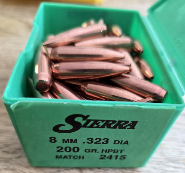 Moin. Ich verkaufe hier 85 Geschosse von Sierra, Kal. 8mm / .323 Dia, HPBT, 200 grs schwer.