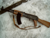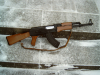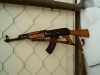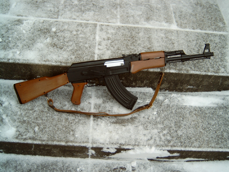 Mit dem Feuerwahlhebel kann man Sichern, Einzelschuss oder Dauerfeuer einstellen. Die AK funktioniert einwandfrei. Das Magazin wird oben mit BB´s gefüllt (Schüttmagazin) und nach dem Einsetzen an dem Rädchen am Magazinboden aufgespannt. Im Schaft habe ich ein Eisengewicht eingesetzt, damit sie etwas schwerer wird. Den Tragegurt hatte ich mir selbst gebaut. Das Gewehr ist in einem ordentlichen Zustand ohne Risse oder Ausbrüche. ACHTUNG: Ladegerät fehlt, 7,2 Volt Akku in der Schulterstütze vorhanden, aber defekt. Dies müssten sie zum Schießen nachkaufen.