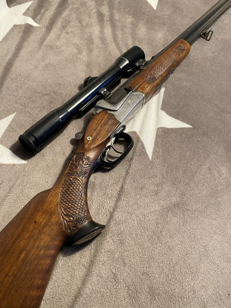 Original Sauer&Sohn BBF mit schönen dekorativen Verschneidungen am Schaft und Vorderschaft in 7x57R &16/70 ,mit Carl Zeiss Diavari 1,5-6x auf Suhler Einhakmontage,Absehen 4,Kugellauf mit Stecher ,Verschluß dicht und stramm schließend,Züge und Felder klar erkennbar,sehr gute Schußleistung,Läufe spiegelblank,