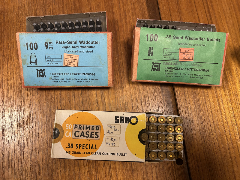 200 Stück Match Geschosse Wadcutter Bullets cal. 38 special Kunststoffbeschichtet, 150 Stück Match Geschosse Wadcuitter Bullets cal. 38 special, 100 Stück 9mm Para-Semi Wadcutter, 70 Stück .38 Semi Wadcutter Bullets Kunststoffbeschichtet, 50 Stück Prime Casas .38, 800 Stück Sellier & Bellot 4,4 SP Boxer Primers, 500 CCI 350 Large Pistol Piomers, 800 CCI Small Pistol Primers für weitere Informationen siehe bitte die Fotos