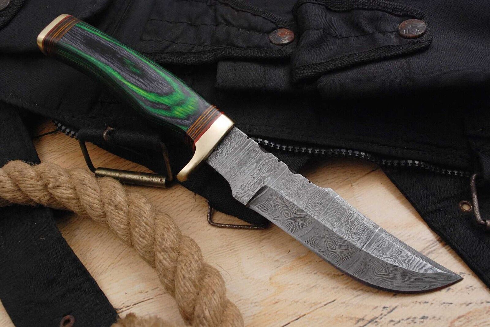 Hier erhalten Sie ein sehr schönes Hand geschmiedetes Damast Jagd Messer in reizvollem Torsion Muster.