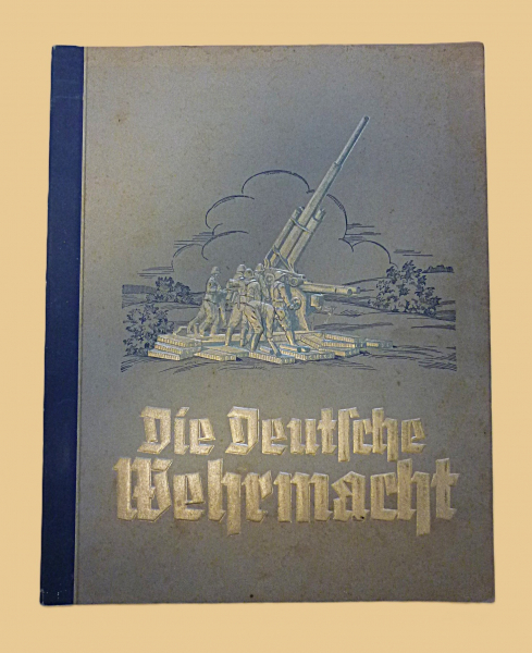 Die Deutsche Wehrmacht Sammelbilderalbum Cigaretten – Bilderdienst Dresden A.5 von 1936…….Vollständige Ausgabe alle Blätter noch fest im Einband mit Uniformkunde und 270 farbigen Bildern. Silbergeprägter Pappband ,…… Größe ca. 33x26 cm. ….. Guter Zustand wie abgebildet mit allgemeinen Lager und Gebrauchsspuren , die Fotos sind auch ein teil der Beschreibung ……Ein sehr seltenes u . interessantes Sammlerstück ……..! Da es sich um eine Privatauktion handelt, kann ich weder Garantie, Gewährleistung noch Rückgaberecht gewähren…….