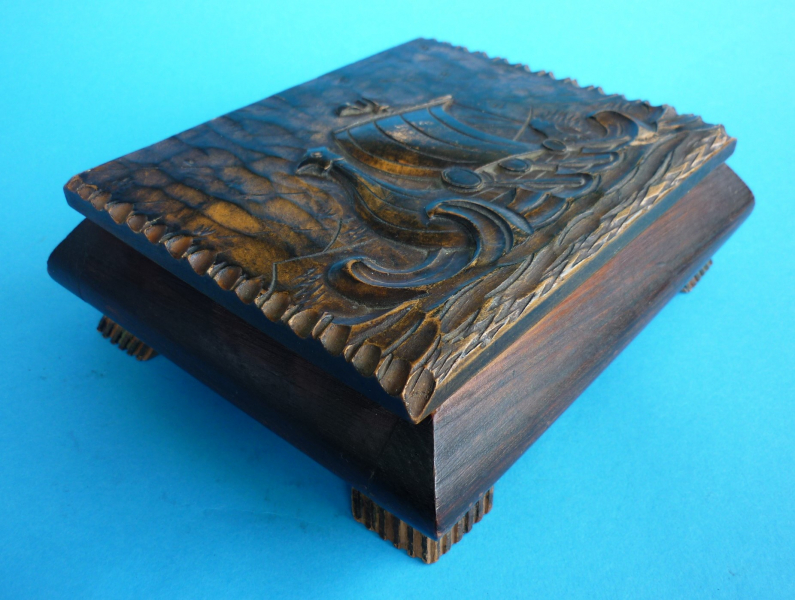 Alte Holzkiste Schatulle Wikingerschiff Drachenboot ……..