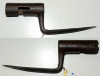 Tüllenbajonett mit kurzer kräftiger Klinge, Klingenlänge 11,7 cm, der Innendurchmesser der Tülle beträgt 22 mm, frühes Bajonett ohne Feststellring, auch der Verriegelungsschlitz ist ungewöhnlich, hinten 10,5 mm breit und vorne nur 5,3 mm breit, gegenüber der Endposition des Schlitzes hinten noch ein kurzer Schlitz, rostig