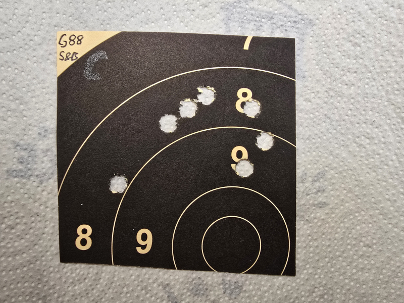 Sehr gute Präzision mit günstiger S&B Patrone 196er Vollmantelpatrone --> Schussbild: 100m