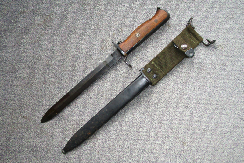 Biete hier diese originale Seitengewehr zum norwegischen Krag-Jörgensen Gewehr M.1894 an, Fertigung aus der bekannten Kongsberg Fabrik mit entsprechendem Herstellerzeichen und Serien-Nummer, so auch an die Deutsche Besatzungstruppen ausgegeben, die mit dem Beutegewehr Krag Jörgensen ausgestattet waren, 2. Weltkrieg-Fertigung, komplett mit grünem Webleinen-Koppelschuh mit Halteriemen, sehr guter Zustand, siehe auch die Fotos dazu, Fragen hierzu gerne per email, Privatverkauf, daher keine Rücknahme oder Umtausch, allen Bietern viel Erfolg, Verkauf nur innerhalb Deutschlands oder nach vorheriger Anfrage, vielen Dank !