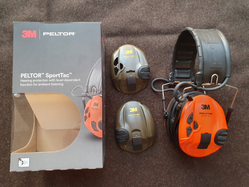 Modell SportTac Hunter mit auswechselbaren Schalen in Grün und Orange.