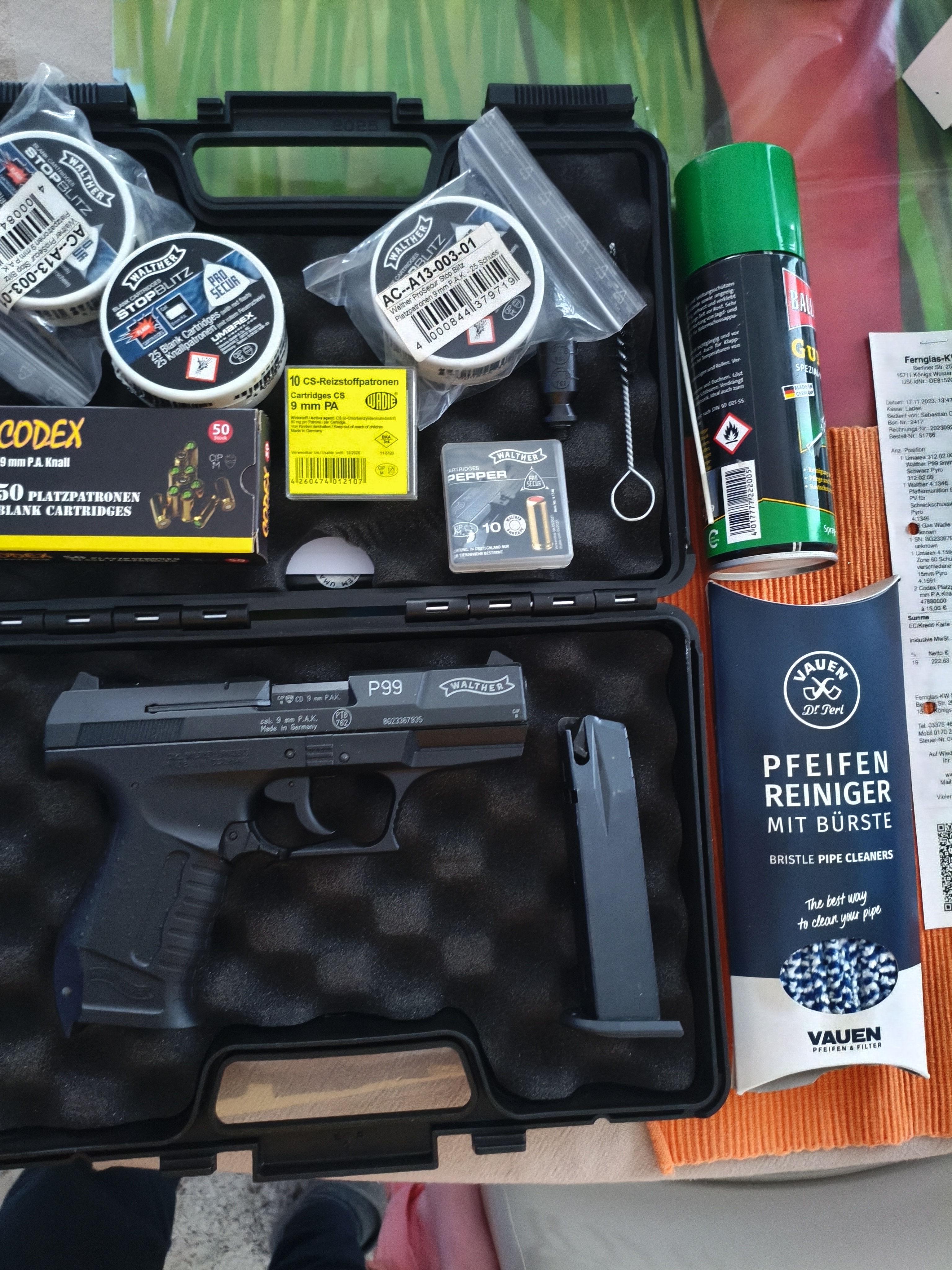 Verkaufe hier meine erst 2 Jahre + 2 Monate, einmalig benutzt Walther P99 Schreckschuss Pistole 9mm P.A.K. und Zubehör mit Rechnung vom 17.11.2023 aus dem Waffenshop Fernglas-KW aus Königs Wusterhausen