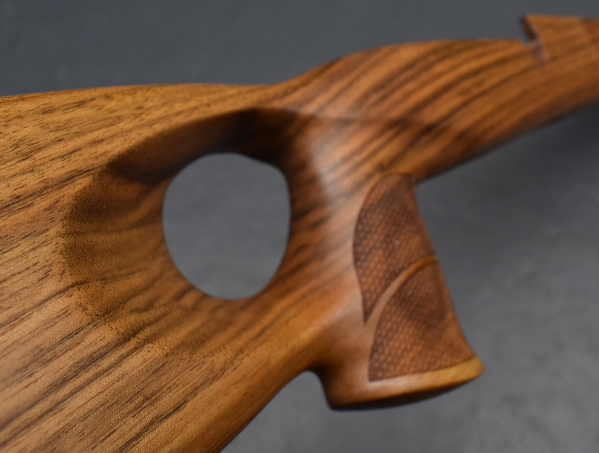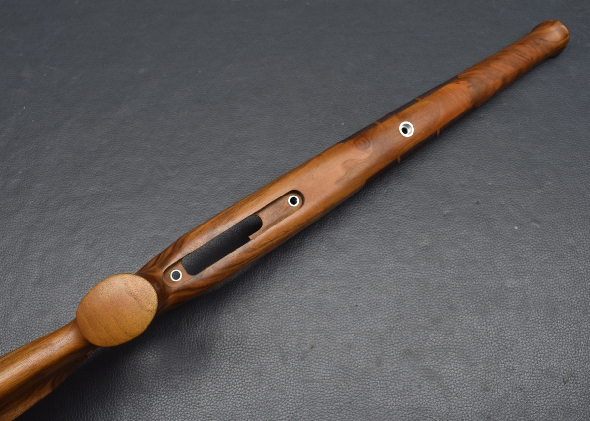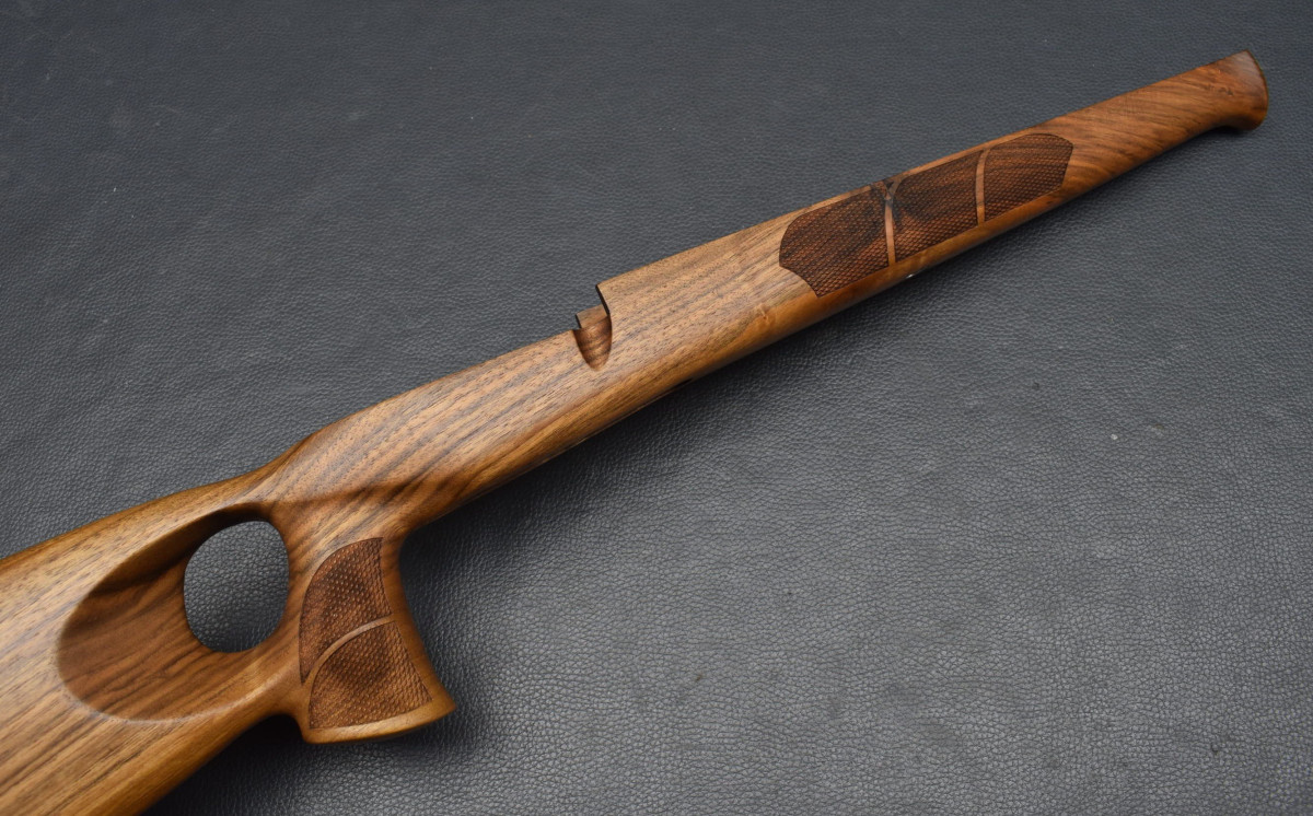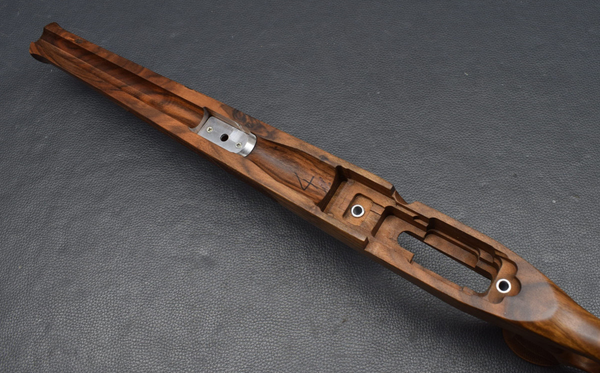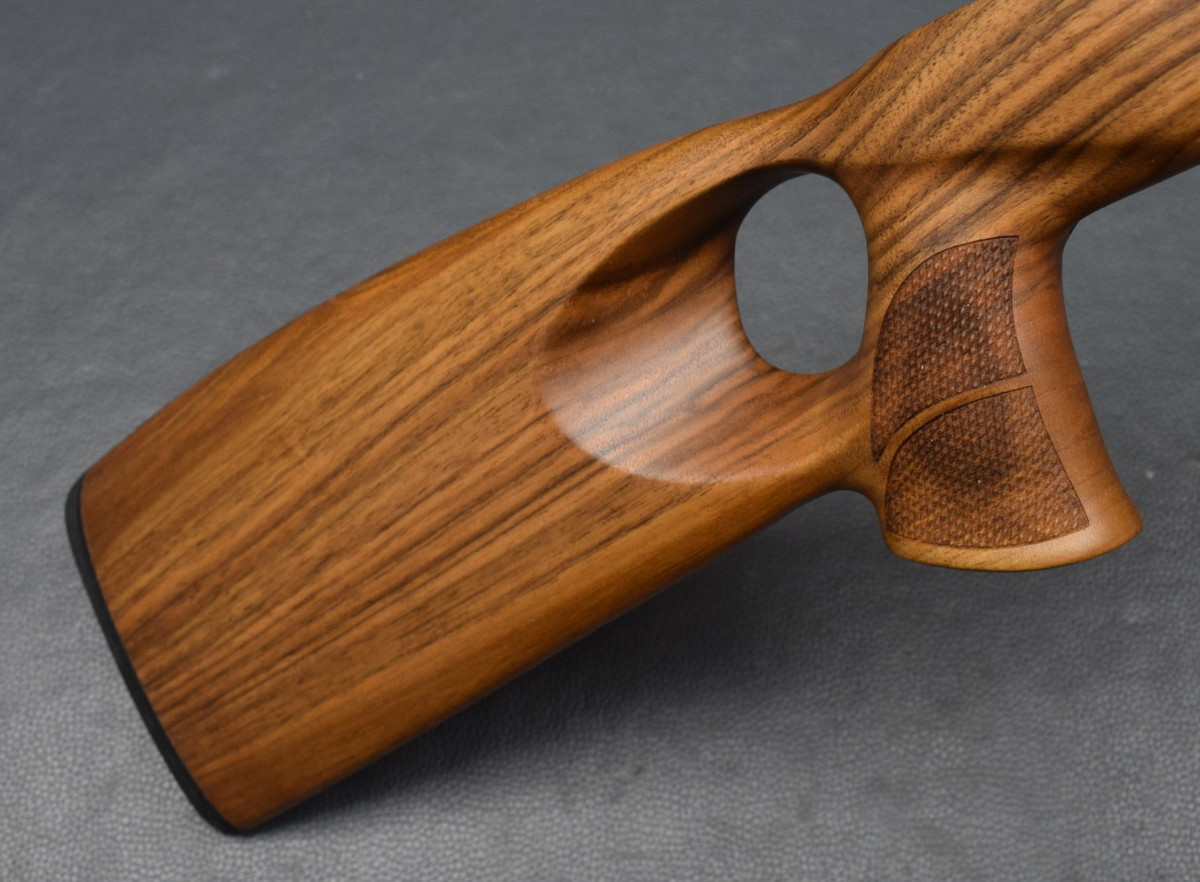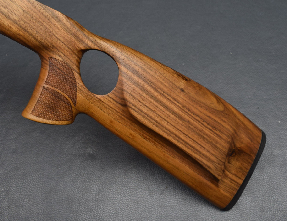 Als Ersatz für den Original Schaft, für Standardsysteme mit 115mm Systemschraubenabstand In neuem attraktiven Design, einfacher Austausch gegen den Original Schaft, Nußbaum-Holzschaft mit Backe im Rigby Style, ,Old english Gummischaftkappe, Schraubenbohrungen mit Alubuchse, Laufblocklager in ALU. Abstand der beiden Bohrungen für Systemschrauben am Abzugsbügel 115mm Laufrinne für passend für Läufe mit maximal 19 mm Außendurchmesser Am Pistolengriff und Vorderschaft mit griffiger Fischhaut. Neuware Hier HK III, original Foto, weitere Holzklassen in unseren anderen Auktionen.