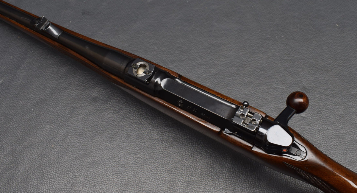 Lauf mit einstellbarer Visierung, Gradezugrepetierer, Zylinderverschluß, Sicherung am Kammerstängel,
