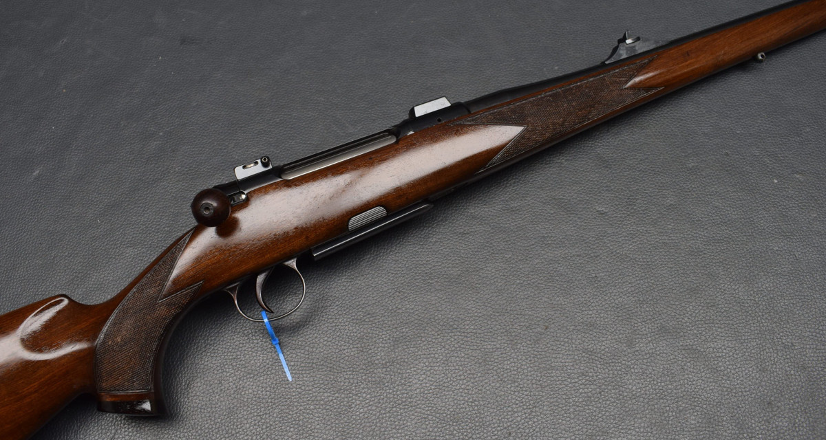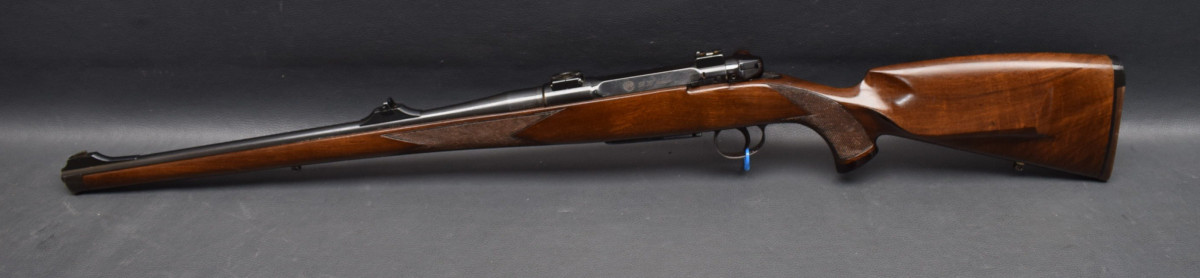 Montiert mit EAW Basen. Nußbaumschaft mit bayr Backe, Gummischaftkappe und Riemenbügelbasen Lauf sehr gut, Brünierung 97%, Schaft sehr gut Gebrauchtwaffe, sehr gut