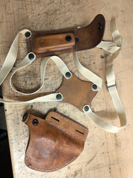 wegen Sammlungsauflösung Schulterholster mit Magazintasche für kleine Revolver oder Pistolen, Handmade