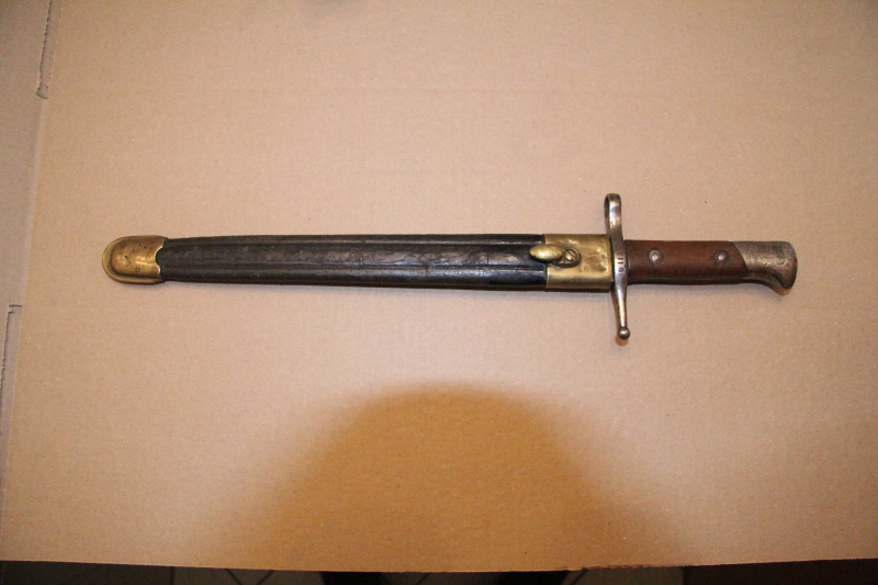 Italien M1891,kein Hersteller gestempelt,Parierstange mit D113 Gestempelt,Klinge spitz ohne Kerben mit Patina,Scheide im gebrauchten Zustand naht geschlossen,Ort und Mundblech fest,Drücker ok,Griffschalen gut,Klinge geht bis auf 2mm nicht ganz in die scheide.