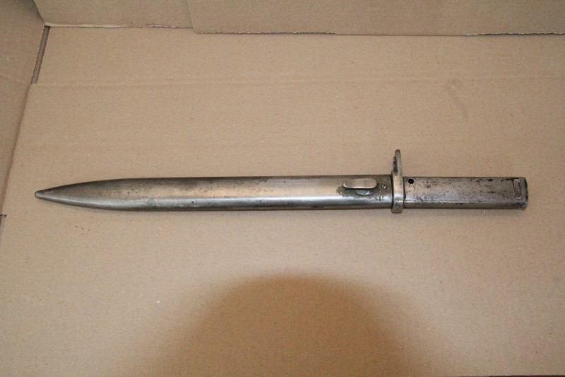 Ersatzbajonett mit geraden griff und kleinen Schnabel,Klinge spitz ohne Kerben mit Abnahmestempel,Scheide ohne Dellen Drücker ok.