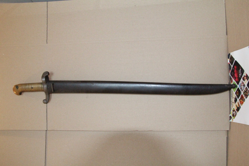 M1842/59, Klinge mit Hersteller und Herstellungsjahr gestempelt,Klinge gut ohne Kerben,Griff und Drücker gut,Parierstange beidseitig mit Patina und leicht Porig,Scheide beidseitig leicht porig,