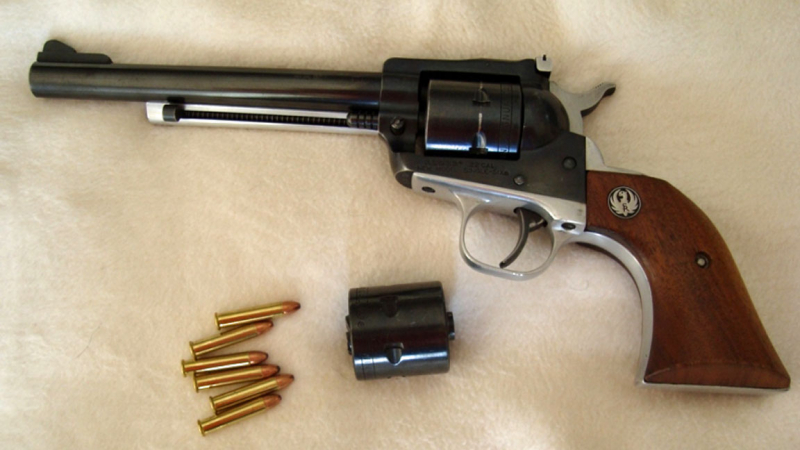 Verkaufe aus meiner Sammlung diesen top gepflegten, feinen 6-schüssigen Single-Action-Revolver der Marke STURM, RUGER & CO.,ING. SOUTHPORT CONNECTICUT USA im Kaliber .22 Mag mit Wechseltrommel ebenfalls im Kaliber .22 Mag. Es handelt sich um ein Sondermodell des New Model Single-Six mit unbrüniertem Griffstück, Ausstoßergehäuse und Mikrometervisierung.