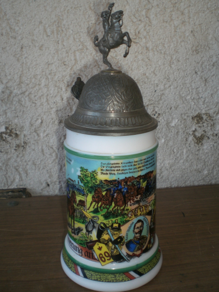 Großer alter, prächtiger Reservistenkrug mit Zinndeckel im Stil um 1900