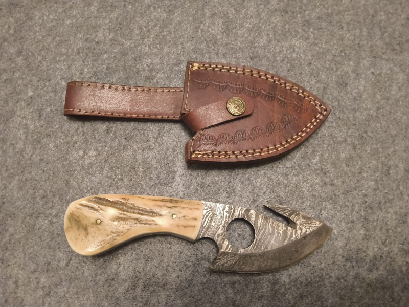 Hallo zusammen, verkaufe hier ein Damast Jagdmesser, Klingenlänge 100mm, Gesamtlänge 200mm, Klingenstärke 5mm, sehr scharf. Zustand neu, siehe Bilder.