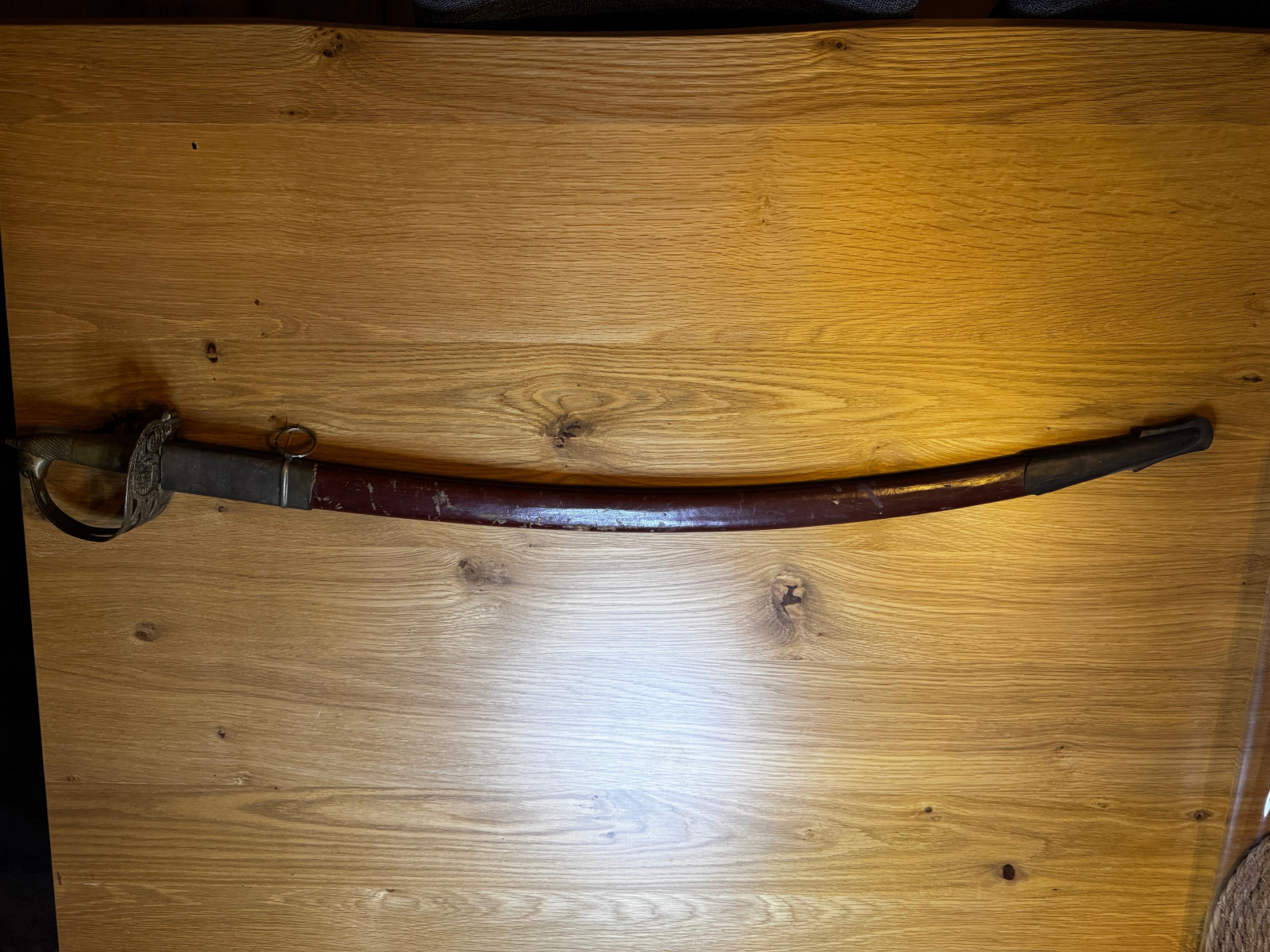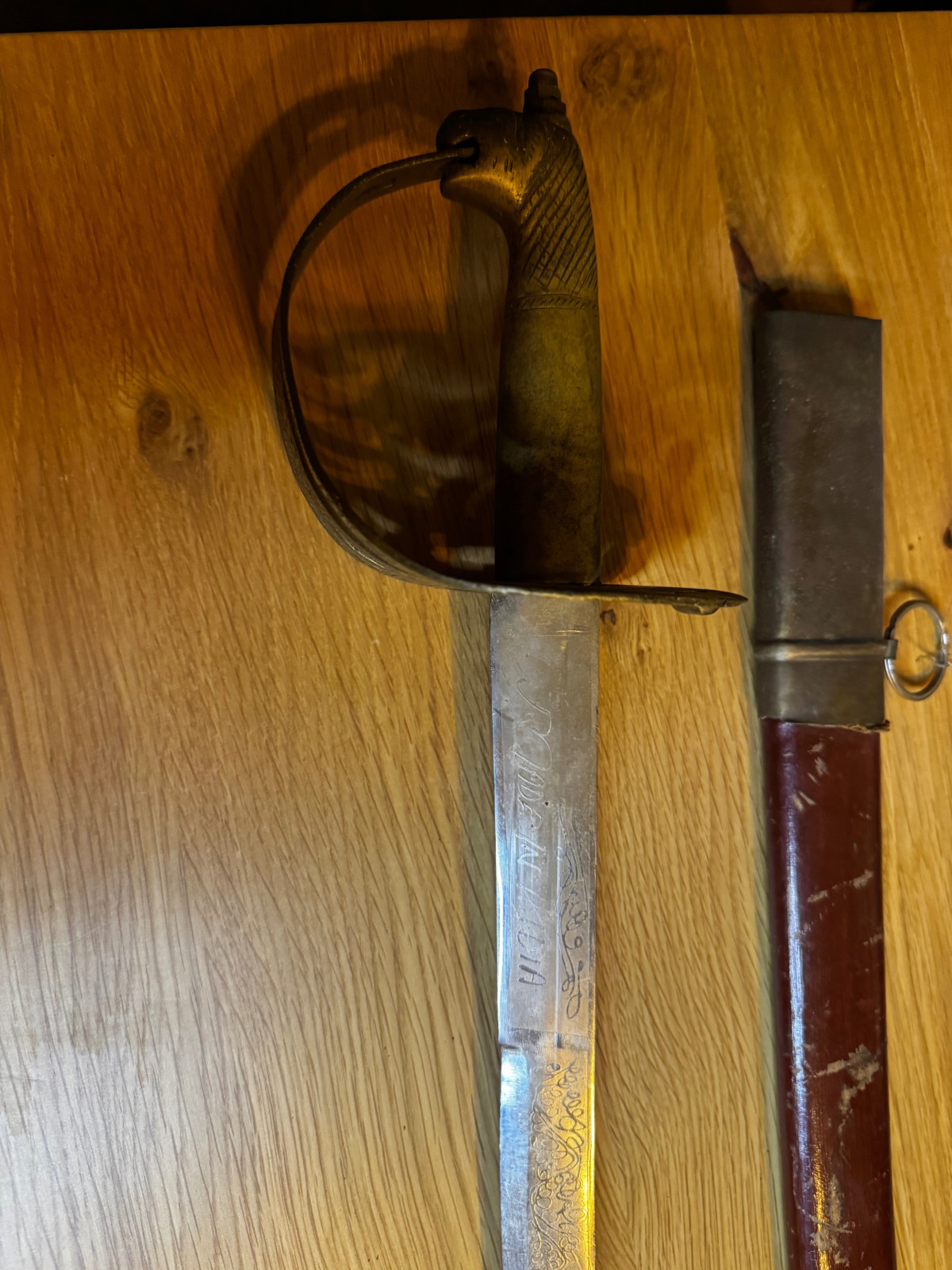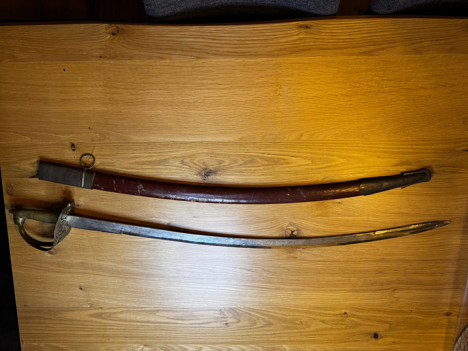 Der Säbel ist alt, mit deutlichen Gebrauchs- und Altersspuren.