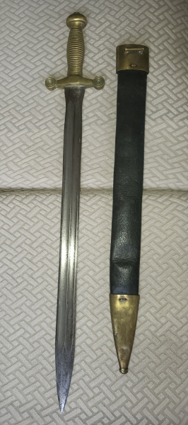 altes originales deutsches Faschinenmesser, Gesamtlänge 60 cm, Lederscheide noch halbwegs erhalten,