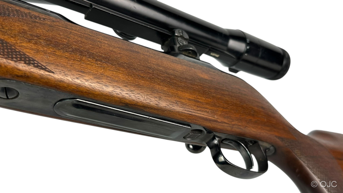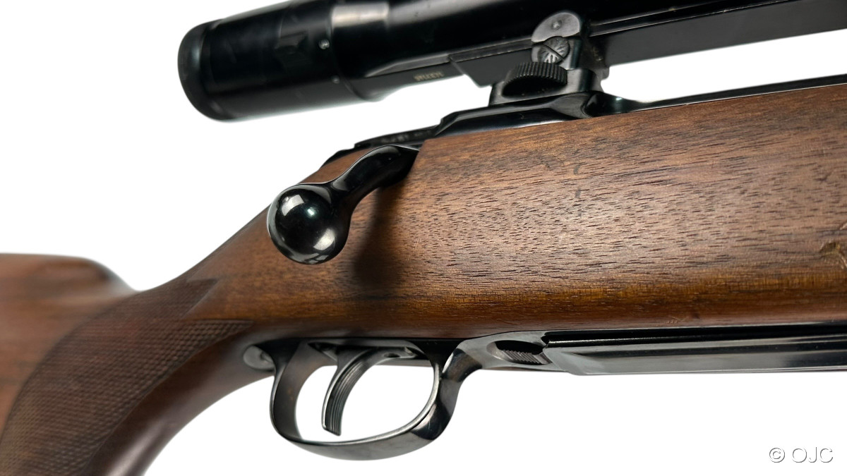 Der Zustand ist als gut zu bewerten: Ein paar eher kleinere Gebrauchsspuren in Form von ein paar Kratzern im Schaft, etwas Brünierungsabrieb, etc... Der Lauf ist innen blank. Patronenlager und Verschluss befinden sich in einem einwandfreien Zustand. Auch die Optik ist absolut funktionsfähig und klar! Siehe Fotos.