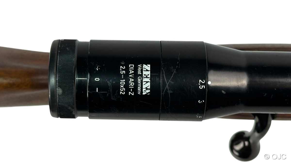 Über eine Suhler Einhakmontage ist ein Zeiss Diatal-Z 2,5-10x52 mit Absehen 1 Diavari verbaut.