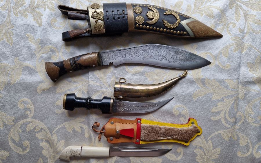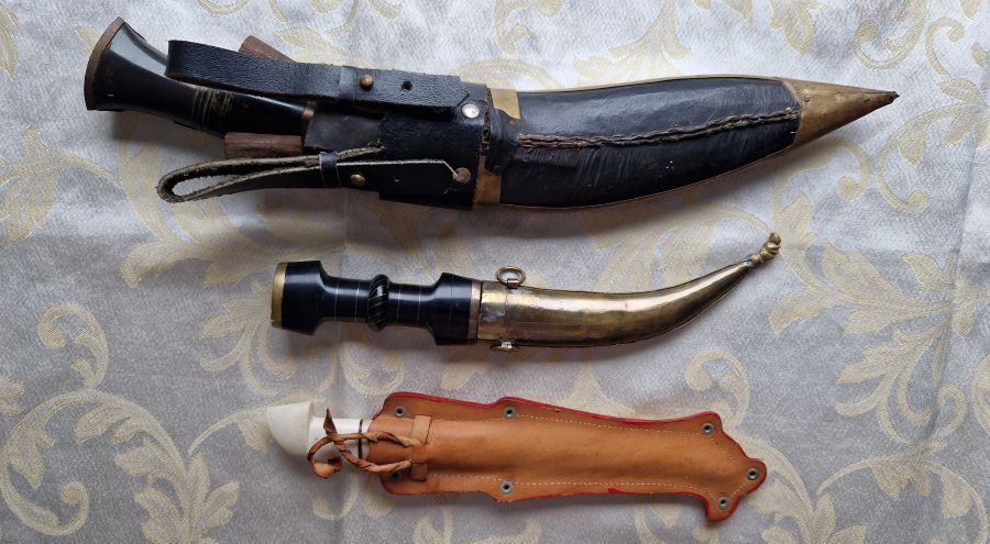 Konvolut Dolche Finnenmesser, orientalischer Dolch, Gurkamesser Indien, nach 1900
