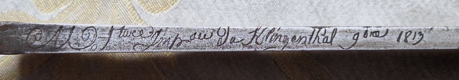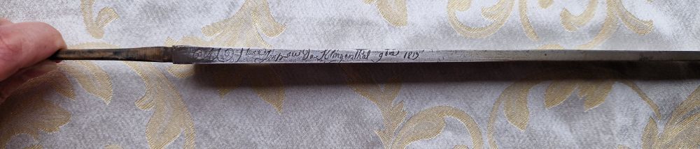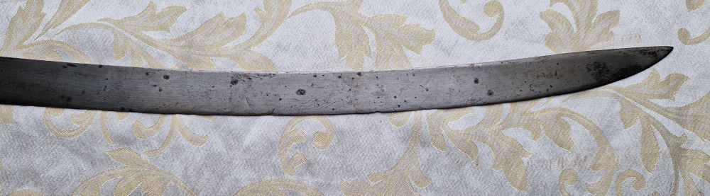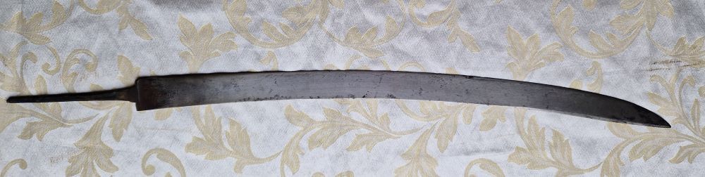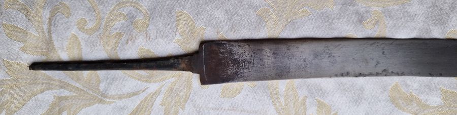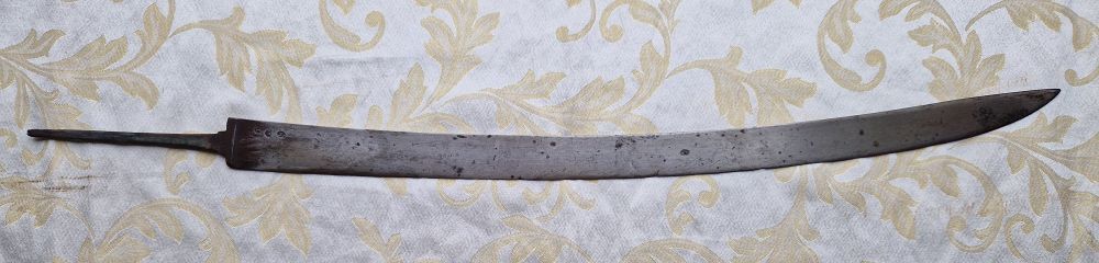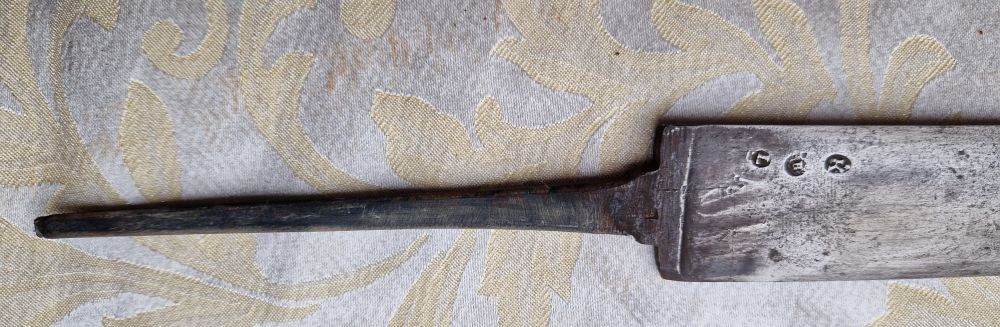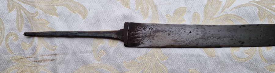 Gesamtlänge mit Angel 74,2 cm. Klingenbreite am Ansatz 3,5 cm.