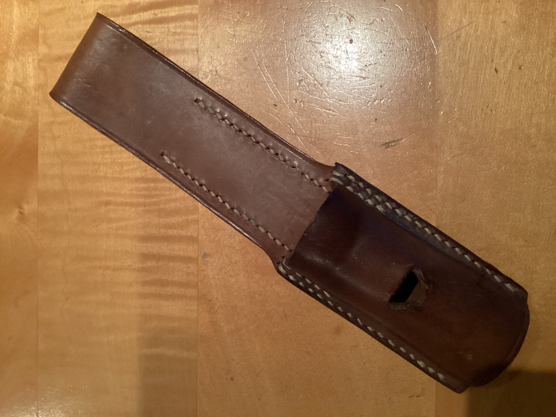 Koppelschuh- Seitengewehr-Bajonett,Leder braun, mit Stempel von 1944. Könnte LW sein da braun. Ebenfalls kann ich nicht genau den Bajonett Type zuordnen. Ich gehe von Tschechischer Fertigung aus, evtl. VZ Bajonette die in der Wehrmacht ja verbreitet waren. Bilder sind wie immer Teil der Beschreibung.