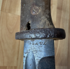 – Griff aus Holz mit deutlichen Gebrauchsspuren und Beschädigung (siehe Fotos)