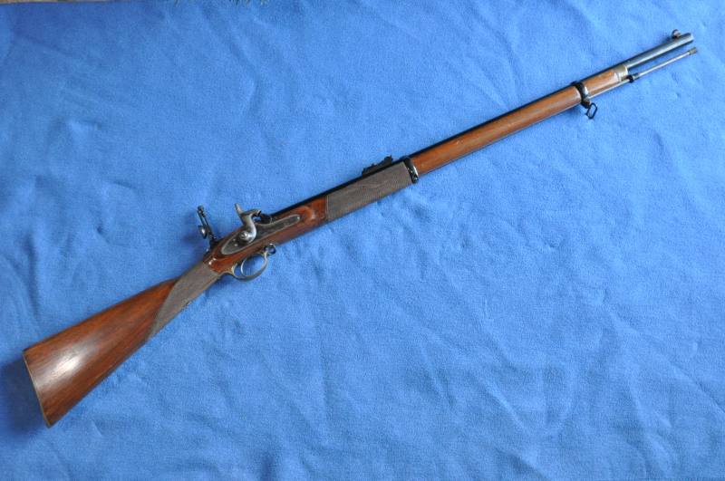 Waffe in einem schönen Zustand mit leichten Gebrauchsspuren am Schaft, Brünierung sehr gut, siehe Bilder, mechanisch voller Funktion, Lauf sehr gut. Mit Diopter. Hochwertige Fertigung aus England.