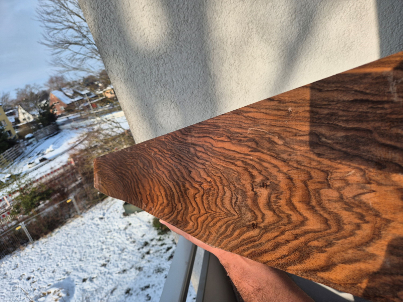 Sehr schöne hinten volle wellenförmige Maserung und vorne mit gerade laufender gestrichelte Maserung in Faserrichtung....