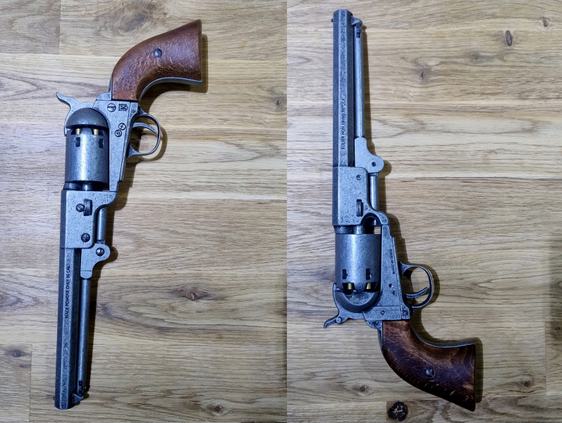 Verkaufe hier einen "gebrauchten" (1A Zustand - Sammlerstück) KOLSER Deko Perkussionsrevolver Colt Navy 1851 altgrau Holzgriffschalen OHNE OVP - Lieferumfang wie auf Foto. Technische Daten: Länge: ca. 340mm - Gewicht: ca. 1080g - Standartversand mit DHL für 5,50€ ohne Tracking usw. - falls anders gewünscht dann 7,90€ Versandkosten - Bezahlung mit Banküberweisung oder mit PayPal FREUND. Information für den Käufer - muss laut Gesetzgeber leider sein: Es handelt sich um einen Privatverkauf. Deshalb schließe ich jede Gewährleistung, Rücknahme und alle Schadensersatzansprüche im Zusammenhang mit dieser Auktion und dem verkauften Artikel aus! 100% Legaler Erwerb und Besitz Dieser Artikel wird 100% gesetzeskonform hergestellt und kann innerhalb Deutschlands frei erworben werden. Sie benötigen keinen Nachweis für den Erwerb oder Besitz. Der Artikel muss nicht unter Verschluss aufbewahrt werden und eignet sich somit ideal zur Dekoration oder für Aufführungen. Dieser Artikel darf gemäß §42a WaffG nicht in der Öffentlichkeit geführt werden. Ausnahmen gelten nur insofern ein berechtigtes Interesse vorliegt. So dürfen Darsteller und Sammler diesen Artikel im Zusammenhang mit Theateraufführungen und der Brauchtumspflege (z.B. entsprechende Veranstaltungen oder Umzüge) in der Öffentlichkeit führen. Außerhalb entsprechender Veranstaltungen muss dieser Artikel, in der Öffentlichkeit, stets in einem verschlossenen Behältnis transportiert werden. Nachfolgend finden Sie weitere Hinweise zum Umgang mit unseren Produkten.