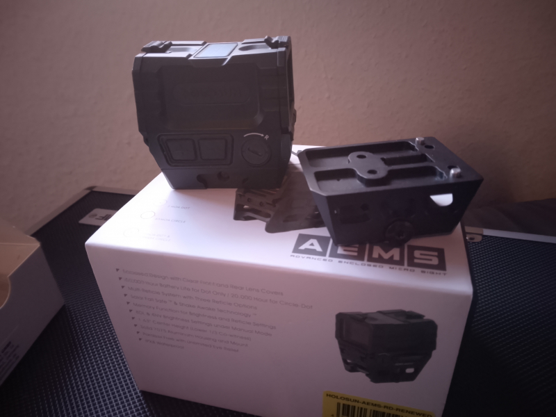 Sie bieten auf das Reflexvisier AEMS von Holosun, bei welchem es sich um ein werksüberholtes System handelt (Rechnung der Optik vom 05.05.2025 vorhanden). Das Visier kommt mit beiden Montagen, die hohe Montage 1/3 Co-Witness (Standard ab Werk) und der zusätzlichen niedrigen Montage von Holosun (derzeit moniert). Ich hatte es schießsportlich in Verwendung, auf einem Anschlagschaft. Die Optik ist drei, vier Mal in einer Raumschießanlage verwendet worden, mehr nicht. OVP und Zubehör sind vorhanden und gehören natürlich zum Angebot.