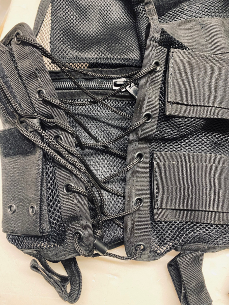 Die taktische Weste USMC Vest besteht aus robustem Polyestergewebe, das gegen Dehnung und mechanische Beschädigungen beständig ist und für ausreichende Belüftung sorgt.