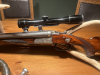 Auf der Waffe sind die Unterteile einer Suhler Einhakmontage montiert, das Zielfernrohr Hensoldt Wetzlar 4x32 ist in der Auktion enthalten. Der Drilling befindet sich in einem sehr guten Zustand mit nur geringen, oberflächlichen Gebrauchsspuren (Zustand siehe Bilder). Der Verschluß ist dicht und spielfrei, die Läufe sind blank, die Züge scharf.