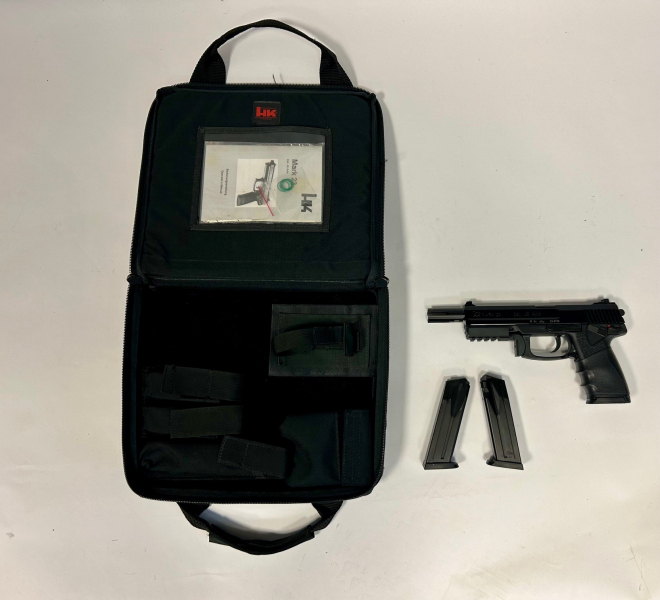Es handelt sich ist eine Pistole des deutschen Waffenherstellers Heckler & Koch im Kaliber .45 ACP für die US Spezialeinheiten SOCOM konzipiert wurde. Sie unterscheidet sich von der USP vor allem durch die Größe und die aus dem Verschluss herausragende Laufmündung mit Gewinde, an der sich ein Schalldämpfer anbringen lässt. Die Mark 23 besitzt eine Magazinkapazität von zehn Patronen und hat eine Lebensdauer von mindestens 30.000 Schuss mit +P Munition. Zudem besitzt die Waffe einen hartverchromten Polygonlauf sowie beidseitiger Entspannhebel. Die Mark 23 wurde mit in den USA gebauten Anbauteilen sinnvoll aufgerüstet. Ein Eyecatcher ist der 4-Prong Flash Hider, der nach den höchsten Standards hergestellt wird und hervorragende Fähigkeiten zum Verbergen des Mündungsfeuers bietet. Hergestellt aus 4140 Ordonnanzstahl, wärmebehandelt und mit der besonders haltbaren Melonite-Beschichtung versehen, um den besten möglichen Korrosions- und Abriebwiderstand zu gewährleisten. Des Weiteren wurde ein spezieller Picatinny Rail Adapter verbaut, der die zeitgemäße Montage von Laser-Licht-Modulen ermöglicht. Die Waffe wird mit insgesamt 3 Stahlmagazinen ausgeliefert. Eine Hogue Gummiüberzug macht die Waffe rutschfest in der Hand beim Schießen.