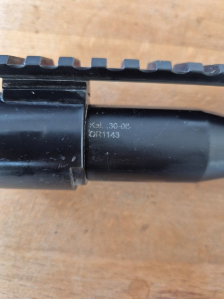 Der Wechsellauf hat ein paar Werkzeugspuren. Die stammen daher, das der Lauf im Schaft gebettet war und sich nicht mehr ohne Werkzeug vom Schaft lösen ließ.