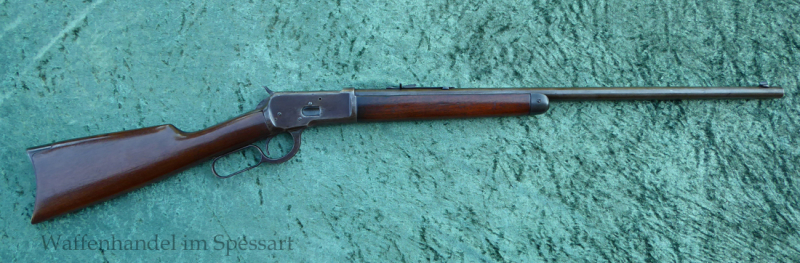 Kal. 32WCF. Ser.Nr. 755690. Baujahr 1914. Das Laufinnere hat scharfkantige Felder und Züge. Es ist leicht matt. Die Winchester ist orginal brüniert. Die Brünierung ist größtenteils abgegriffen und ist in Patina übergegangen. Gute Stramme Mechanik. Ausführung mit Halbmagazin.
