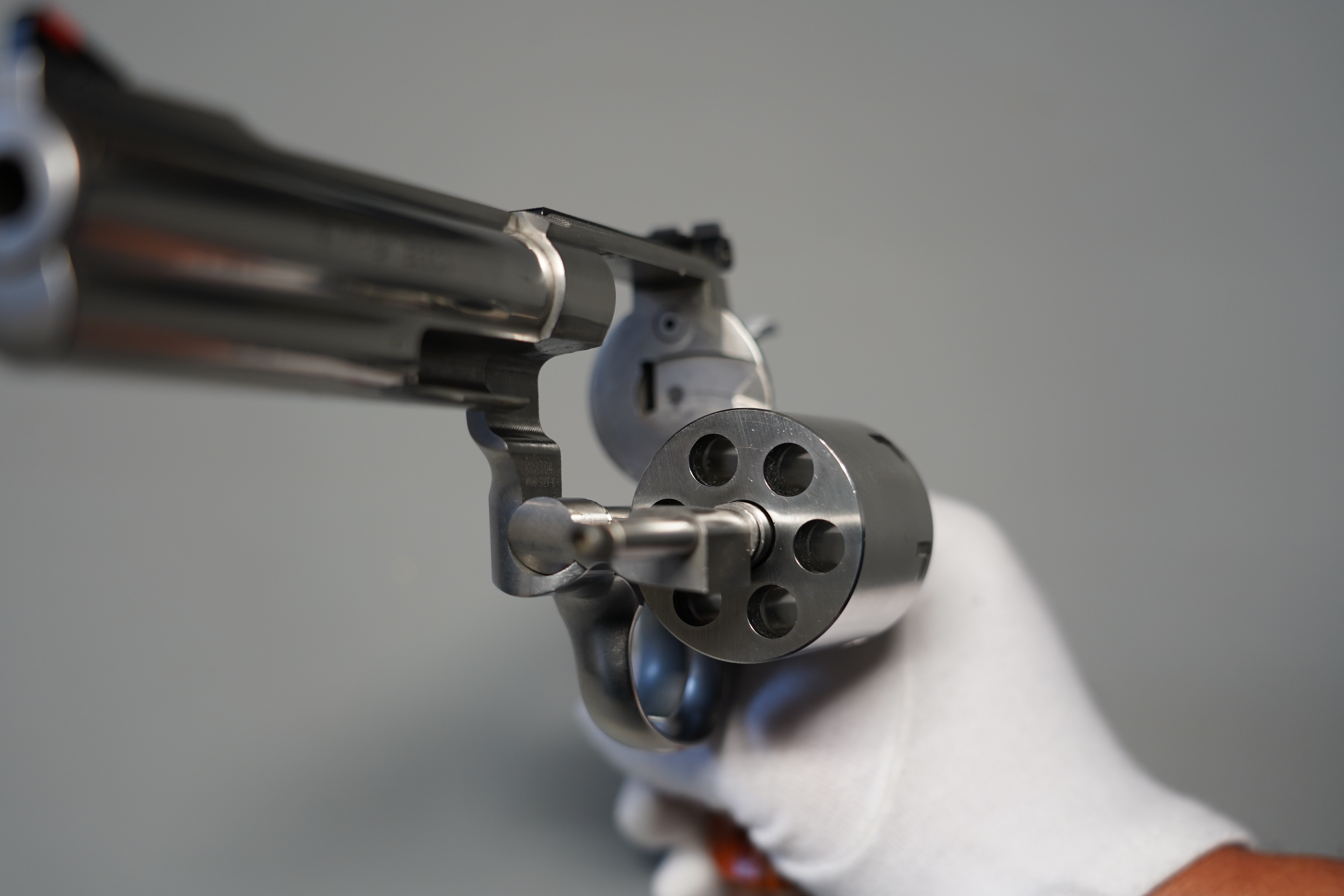 Der Revolver ist im Kaliber .357 Magnum (auch .38 Spezial), wurde aber mit dem S&W „N“ Rahmen konstruiert der vom .44 Magnum Modell stammt.